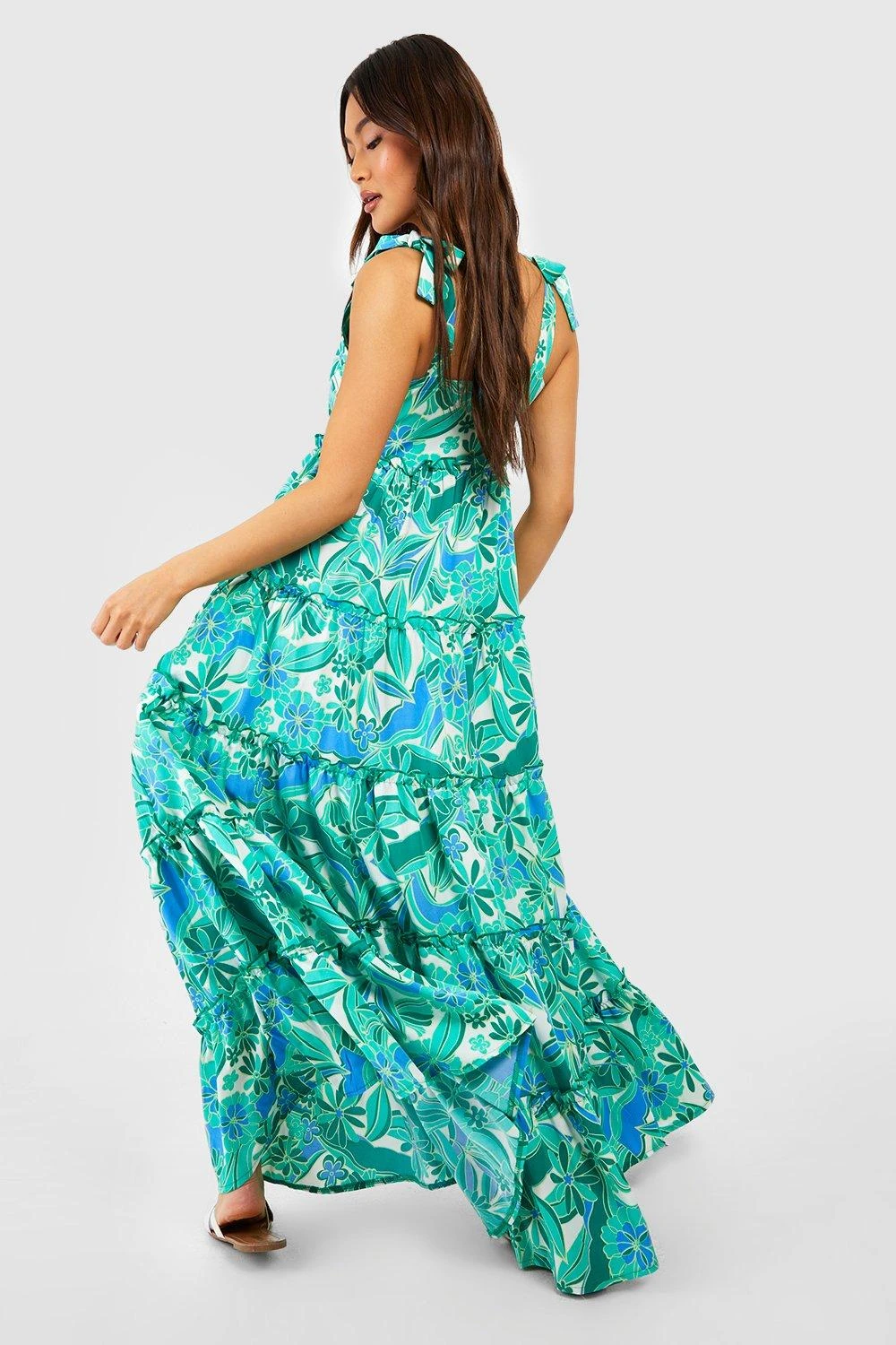 Florales Gestuftes Rüschen-Maxikleid